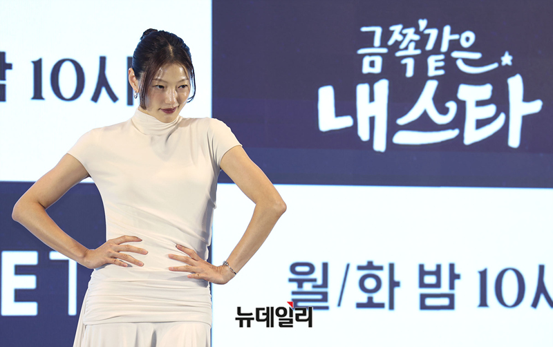 배우 이엘이 12일 오후 서울 구로구 신도림 디큐브시티 더 세인트에서 열린 지니 TV 오리지널 '금쪽같은 내 스타(극본 박지하, 연출 최영훈)' 제작발표회에서 포즈를 취하고 있다.