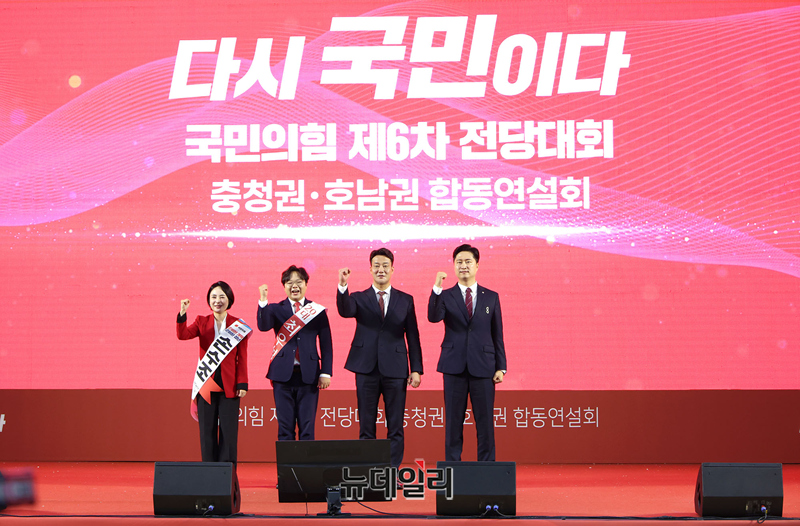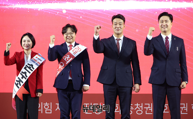 [포토] 국민의힘 충남호남권 합동연설회 참석한 청년최고위원 후보들