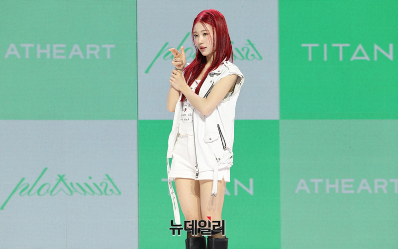 신인 걸그룹 '앳하트(AtHeart)' 아린이 13일 오후 서울 용산구 블루스퀘어에서 열린 첫번째 EP앨범 쇼케이스에서 포즈를 취하고 있다.미국 LA에 본사를 두고 설립된 K-POP 스타트업 타이탄콘텐츠의 첫 글로벌 걸그룹 앳하트는 마음, 심장, 사랑을 뜻하는 'Heart'와 마음을 전하는 연결의 의미를 담은 'At'이 만나 전 세계 팬들과 마음으로 소통하고 함께 성장해 나가는 뜻을 담았다.타이틀곡 Plot Twist을 비롯해 5트랙을 담았다. 멤버는 나현, 서현, 미치, 봄, 케이틀린, 아린 등 6명이다. 음원은 오후 6시 공개.