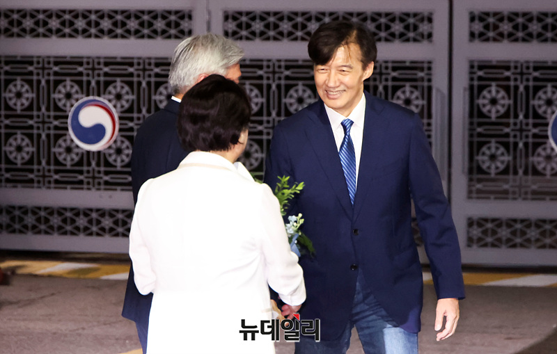 광복절 특별사면으로 사면·복권되는 조국 전 조국혁신당 대표가 15일 오전 서울남부교도소에서 출소하며 대국민 인사를 발표하고 있다.