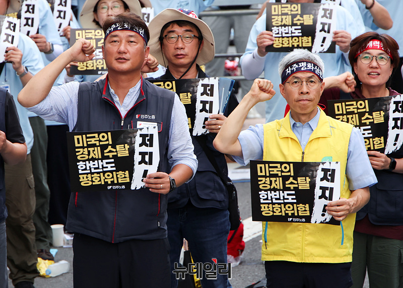 [포토] 민노총 '미국 경제수탈·한반도 평화위협 저지'