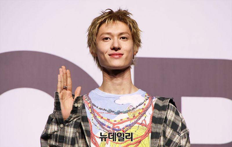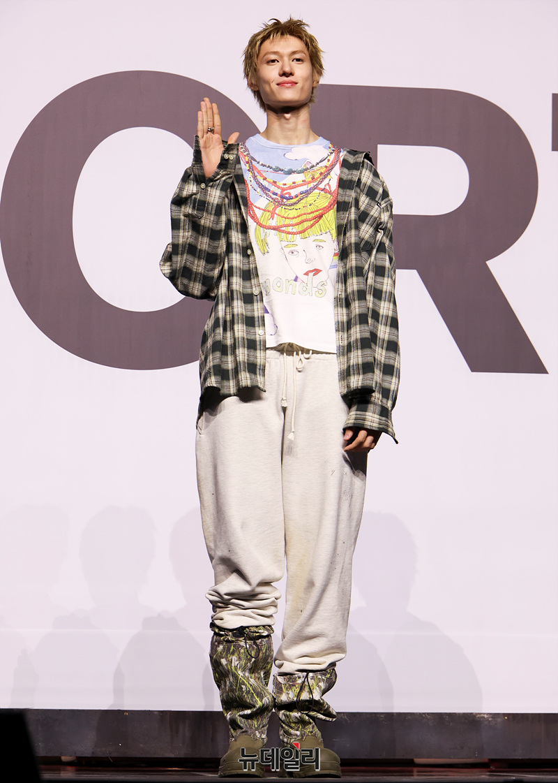 신인 보이그룹 코르티스(CORTIS) 마틴이 18일 오후 서울 용산구 블루스퀘어에서 열린 데뷔 쇼케이스에서 포즈를 취하고 있다.