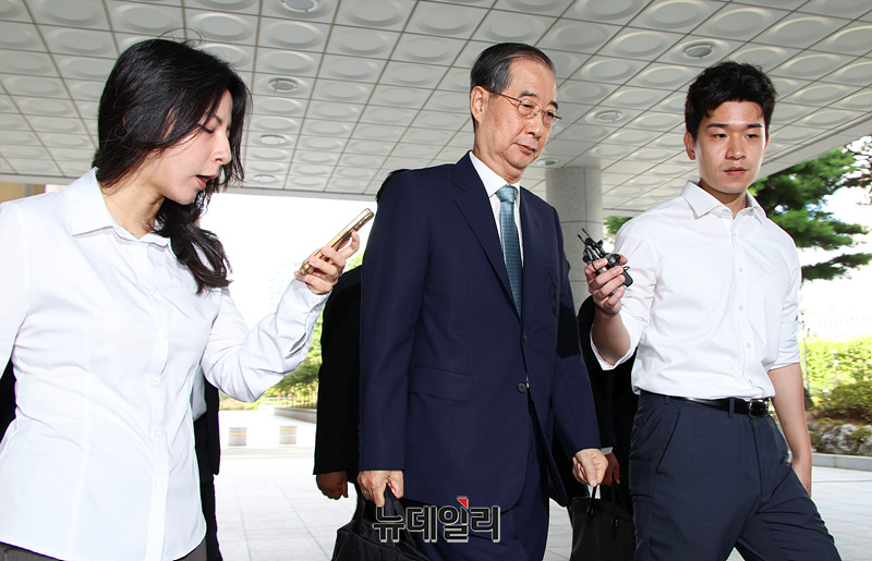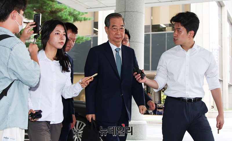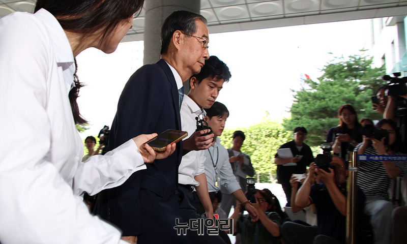 한덕수 전 국무총리가 19일 오전 서울 서초구 서울고검에 마련된 내란 특검팀(특별검사 조은석) 사무실에 출석하고 있다.