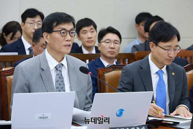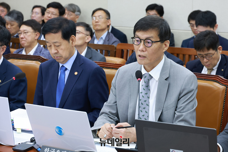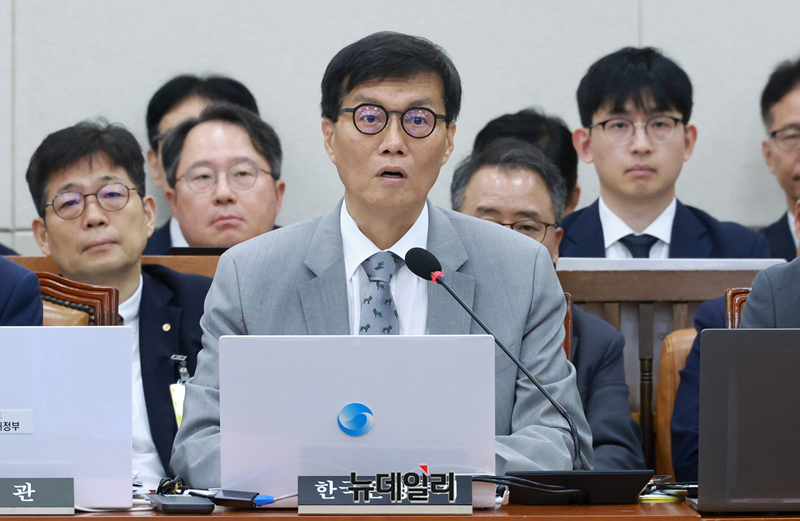이창용 한국은행 총재가 19일 국회에서 열린 기획재정위원회 전체회의에서 출석해 원화 스테이블코인 관련 현안보고를 하고 있다.