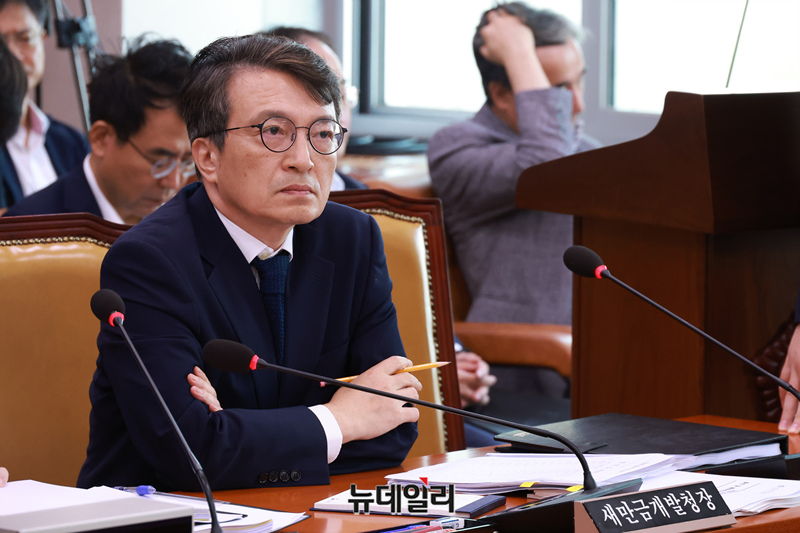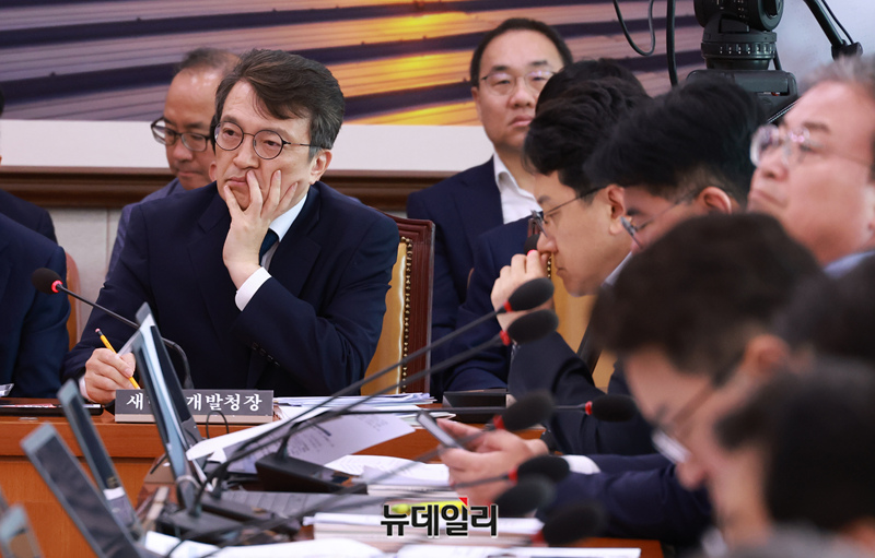 김의겸 새만금개발청장이 19일 오전 국회에서 열린 국토교통위원회 전체회의에 출석해 앉아 있다.