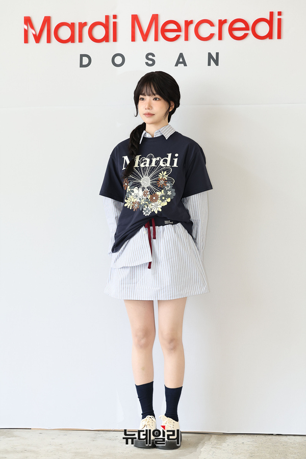 배우 조유리가 21일 오후 서울 강남구 마르디 메크르디 도산 플래그십 스토어 오픈 기념행사에서 포즈를 취하고 있다.