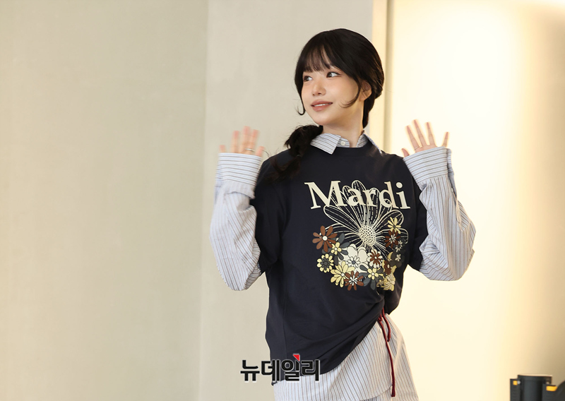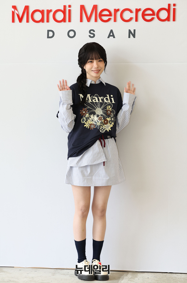 배우 조유리가 21일 오후 서울 강남구 마르디 메크르디 도산 플래그십 스토어 오픈 기념행사에서 포즈를 취하고 있다.