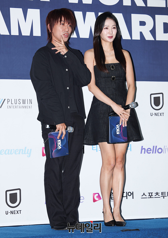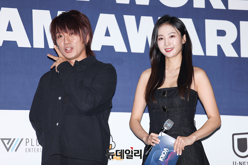 방송인 다나카와 황인혜가 21일 오후 서울 송파구 잠실 실내체육관에서 열린 '2025 케이 월드 드림 어워즈( K-WORLD DREAM AWARDS 2025)' 블루카펫에서 포즈를 취하고 있다.