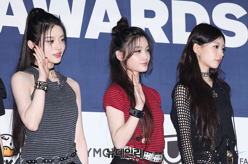 그룹 아일릿이 21일 오후 서울 송파구 잠실 실내체육관에서 열린 '2025 케이 월드 드림 어워즈( K-WORLD DREAM AWARDS 2025)' 블루카펫에서 포즈를 취하고 있다.