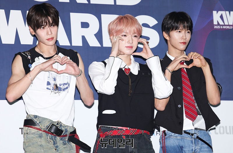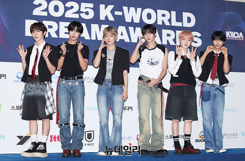 그룹 NCT WISH가 21일 오후 서울 송파구 잠실 실내체육관에서 열린 '2025 케이 월드 드림 어워즈( K-WORLD DREAM AWARDS 2025)' 블루카펫에서 포즈를 취하고 있다.