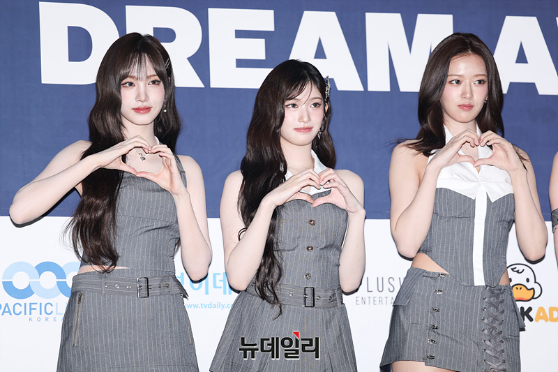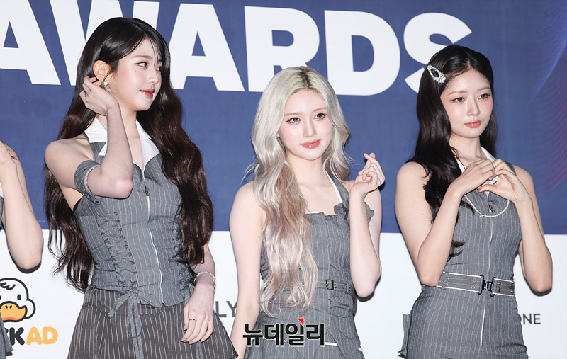 그룹 아이브가 21일 오후 서울 송파구 잠실 실내체육관에서 열린 '2025 케이 월드 드림 어워즈( K-WORLD DREAM AWARDS 2025)' 블루카펫에서 포즈를 취하고 있다.