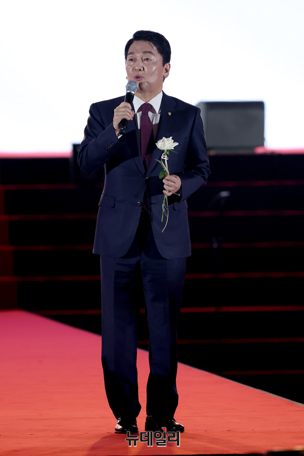 안철수 국민의힘 당대표 후보가 13일 오후 청주 오스코에서 열린 국민의힘 당대표 선출을 위한 전당대회에서 지지를 호소하고 있다.