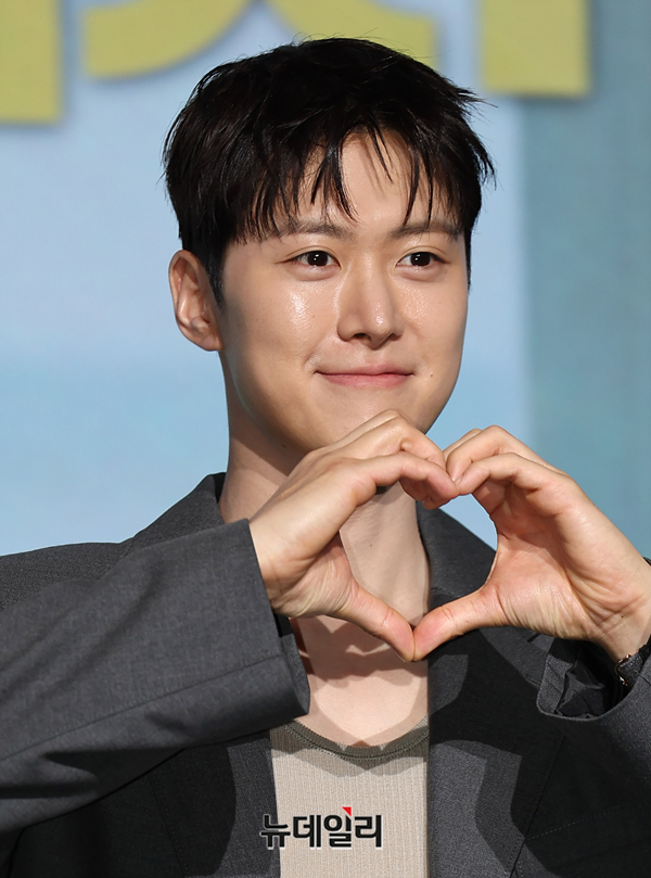 배우 공명이 25일 오전 서울 마포구에서 호텔 나루 서울 엠갤러리에서 열린 넷플릭스 영화 '고백의 역사(각본 감독 남궁선)' 제작보고회에서 포즈를 취하고 있다.