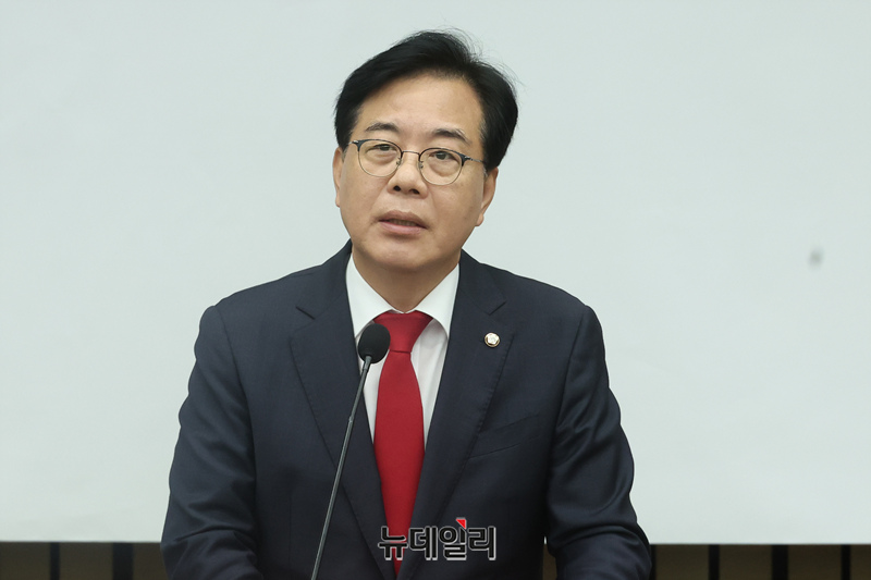 송언석 국민의힘 비상대책위원장 겸 원내대표가 25일 국회에서 열린 의원총회에서 모두발언을 하고 있다.