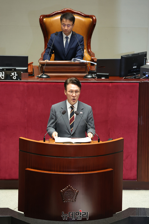 김민석 국무총리가 25일 오전 국회에서 열린 예산결산특별위원회 전체회의에 참석해 인사말을 하고 있다.