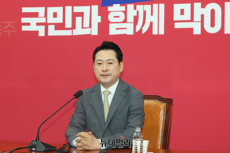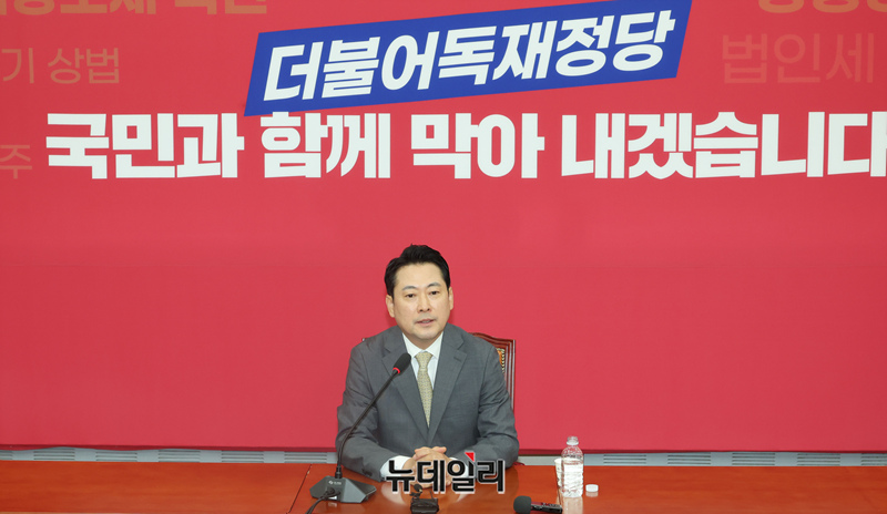 [포토] 기자들의 질문에 답하는 장동혁 국민의힘 신임 대표