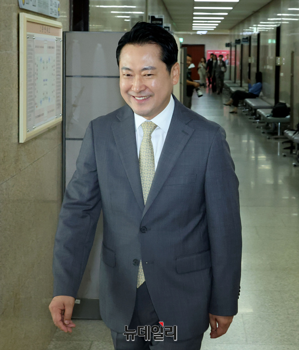 [포토] 밝은 얼굴로 회견장 향하는 장동혁 국민의힘 신임 대표
