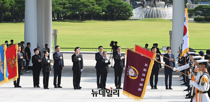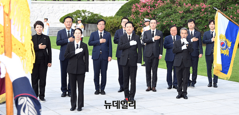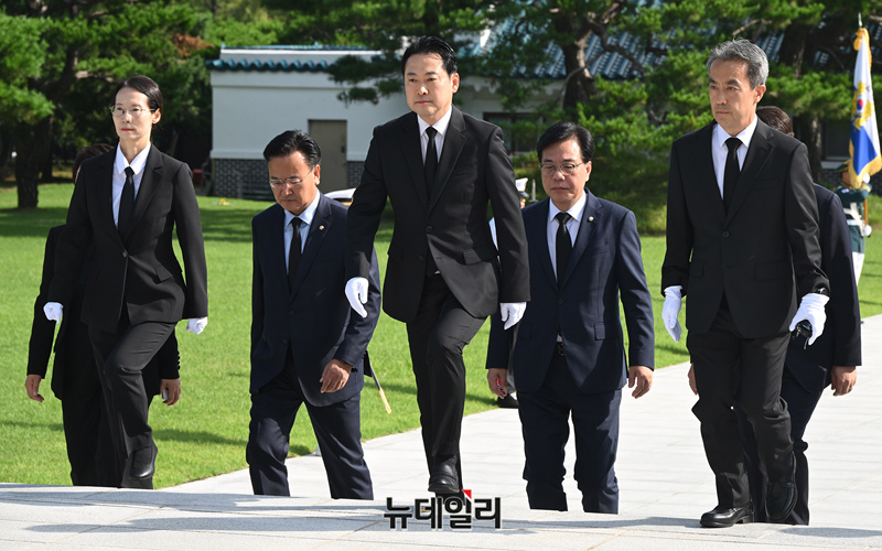 [포토] 현충탑 향하는 국민의힘 신임 지도부