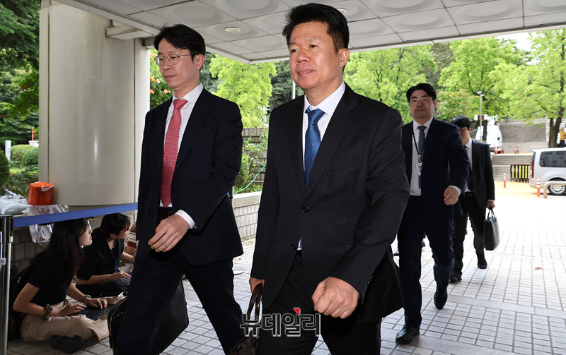 비상계엄 관련 사건을 수사하는 조은석 특검팀의 김형수 특검보가 27일 오후 서울 서초구 서울중앙지법에서 열린 한덕수 전 국무총리의 영장심사에 출석하고 있다.