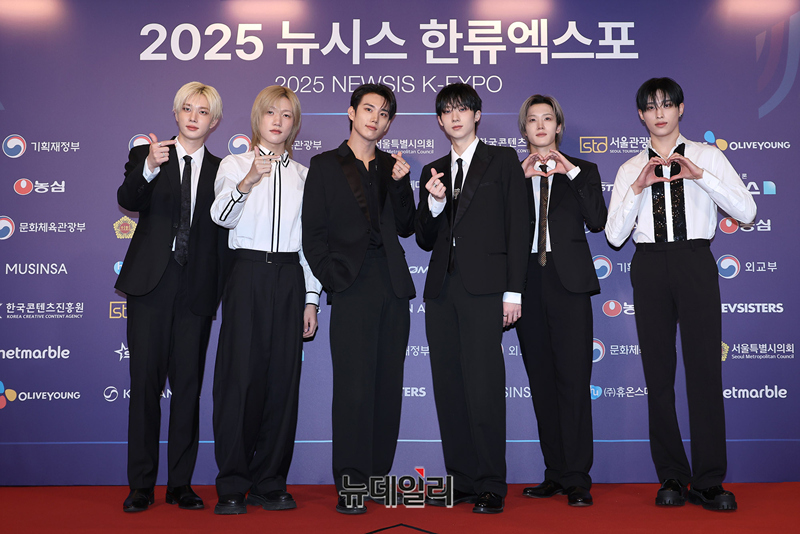 그룹 피원하모니가 28일 오후 서울 중구 롯데호텔에서 열린 2025 뉴시스 한류엑스포에서 포즈를 취하고 있다.