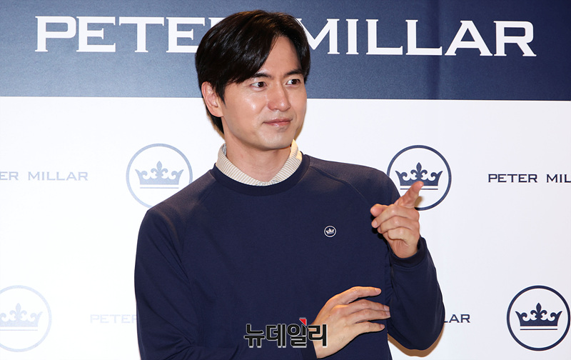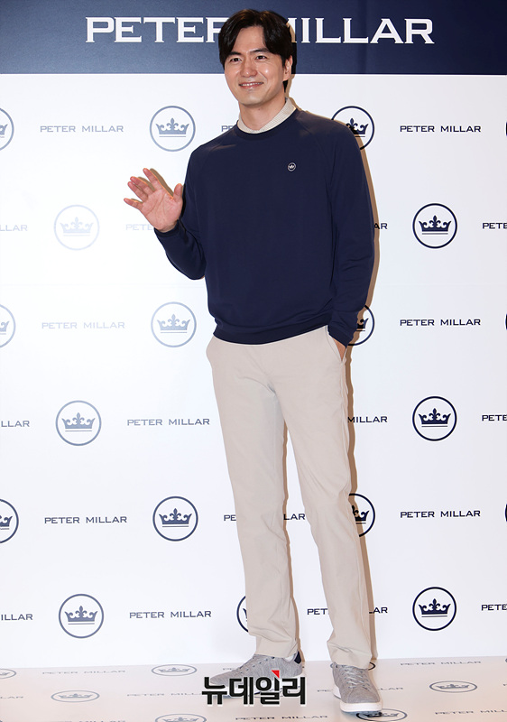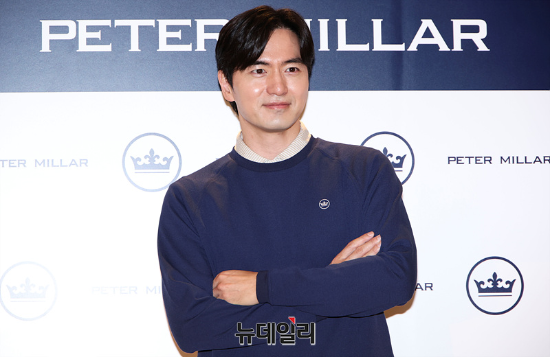 배우 이진욱이 29일 오전 서울 서초구 신세계백화점 강남점에서 열린 골프 웨어 브랜드 '피터 밀러' 팝업스토어 오픈 기념 포토월에서 포즈를 취하고 있다.