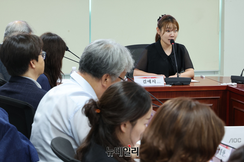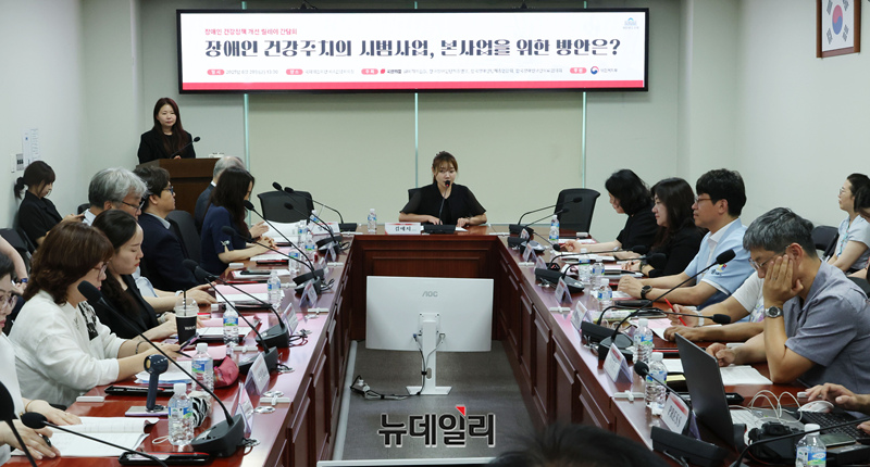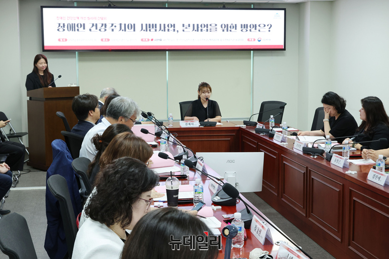 김예지 국민의힘 의원이 29일 오전 국호 의원회관에서 열린 '장애인 건강주치의 시범사업, 본사업을 위한 방안은? : 장애인 건강정책 개선 릴레이 간담회'에서 인사말을 하고 있다.