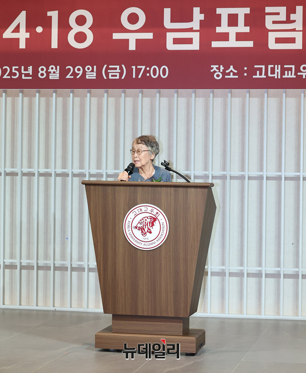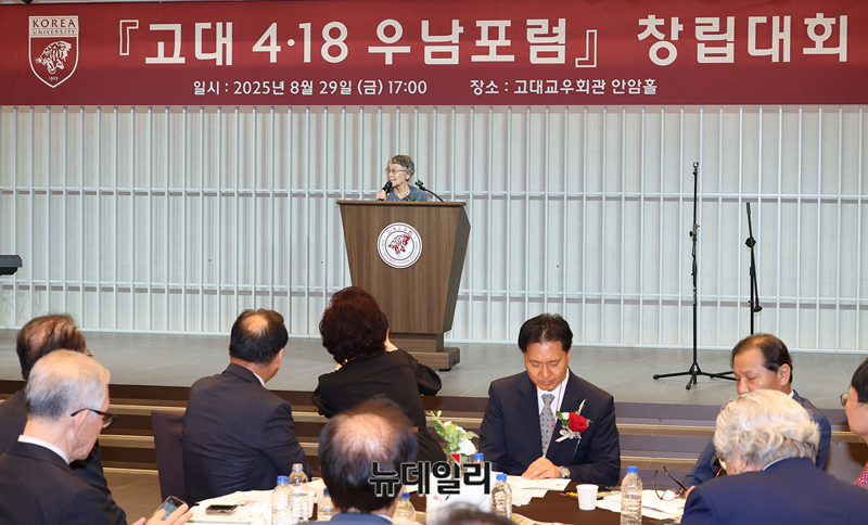 이인호 서울대 명예교수가 29일 오후 서울 성북구 고대교우회관에서 열린 '고려대 4.18 우남포럼 창립대회'에서 축사를 하고 있다.