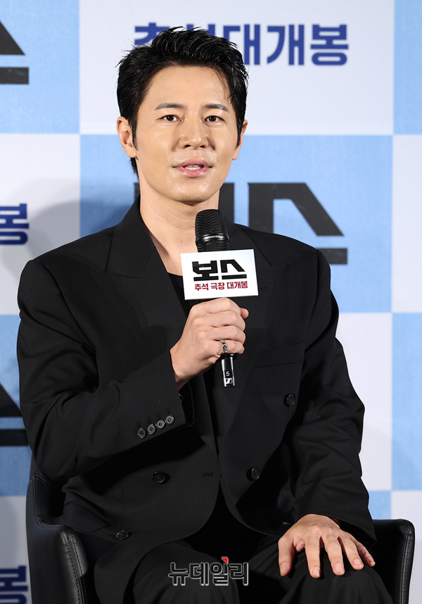 배우 이규형이 1일 오전 서울 성동구 메가박스 성수에서 열린 영화 '보스(감독 라희찬)' 제작보고회에서 인사말을 하고 있다.
