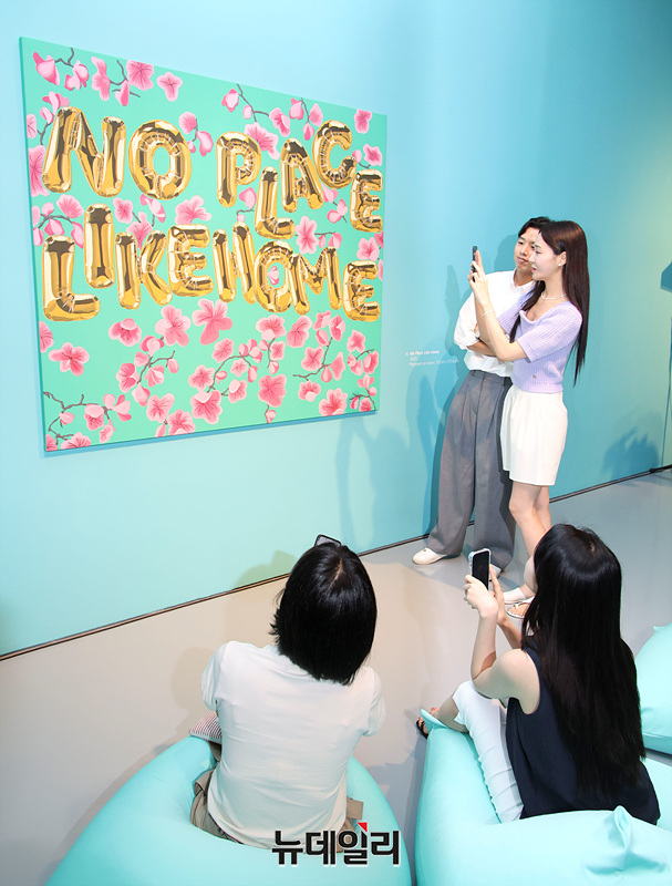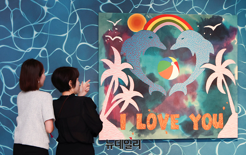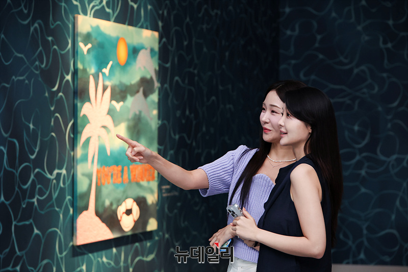 파라다이스시티는 2일부터 치유와 회복의 메시지를 트로피컬한 색채와 경쾌한 화풍으로 담아낸 조엘 메슬러의 작품 24점을 선보인다. (인천=서성진 기자)