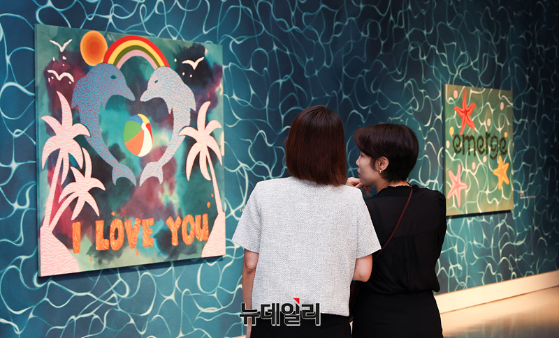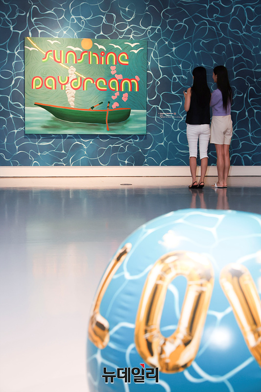 관람객들이 1일 오전 인천 중구 파라다이스시티 아트스페이스에서 열린 미국 팝아트 작가 조엘 메슬러의 국내 첫 개인전 파라다이스 파운드(Paradise Found) 사전공개 행사에서 작품을 관람하고 있다.