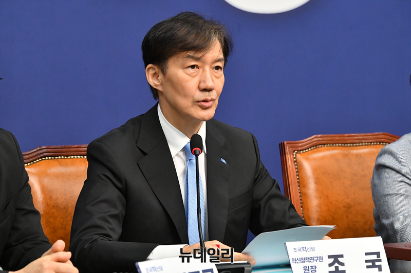 조국 조국혁신당 혁신정책연구원장이 1일 오전 국회에서 열린 최고위원회의에 참석해 발언을 하고 있다.