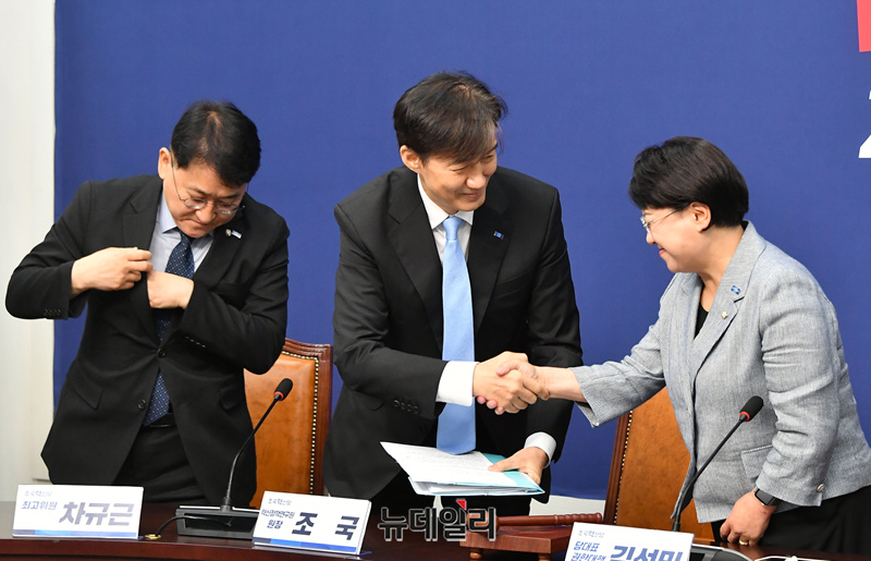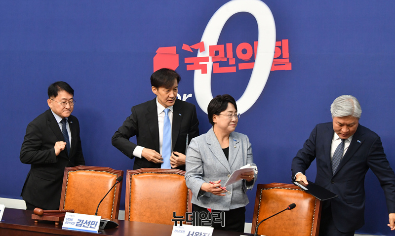 조국 조국혁신당 혁신정책연구원장이 1일 오전 국회에서 열린 최고위원회의에 참석해 발언을 마치고 떠나고 있다.
