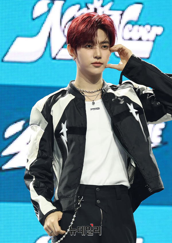 제로베이스원 장하오가 1일 오후 서울 용산구 블루스퀘어에서 열린 첫 정규 앨범 쇼케이스에서 포즈를 취하고 있다.