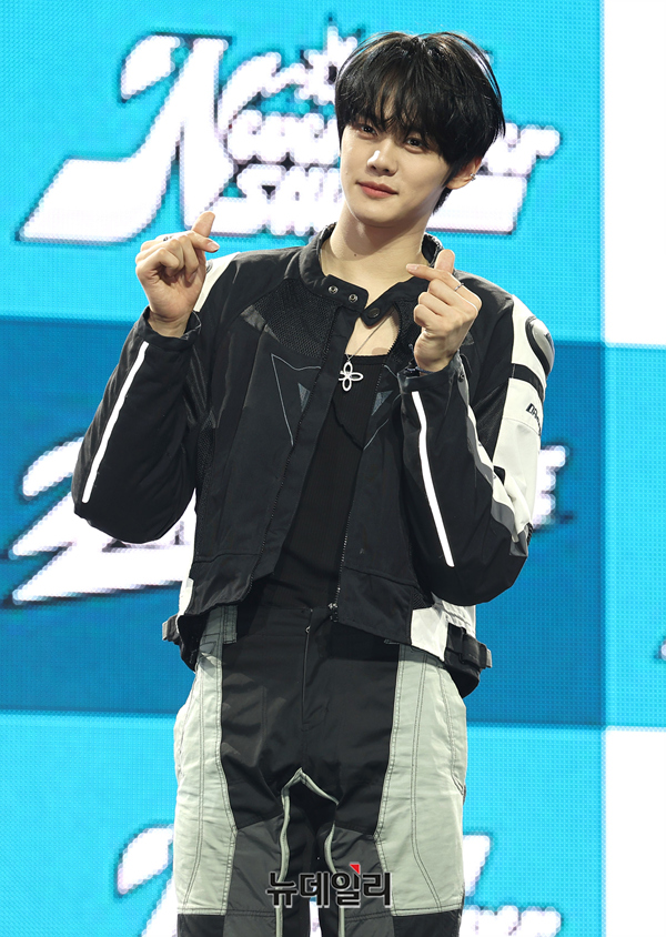 제로베이스원 김규빈이 1일 오후 서울 용산구 블루스퀘어에서 열린 첫 정규 앨범 'NEVER SAY NEVER(네버 세이 네버)' 쇼케이스에서 포즈를 취하고 있다.