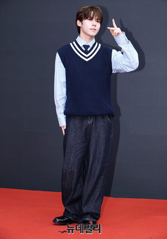 유어즈 문재일이 1일 오후 서울 용산구 썸머스타에서 열린 서바이벌 프로그램 '비 마이 보이즈(B:MY BOYZ)'의 데뷔 그룹 '유어즈(YUHZ)' 글로벌 기자회견에서 포즈를 취하고 있다.