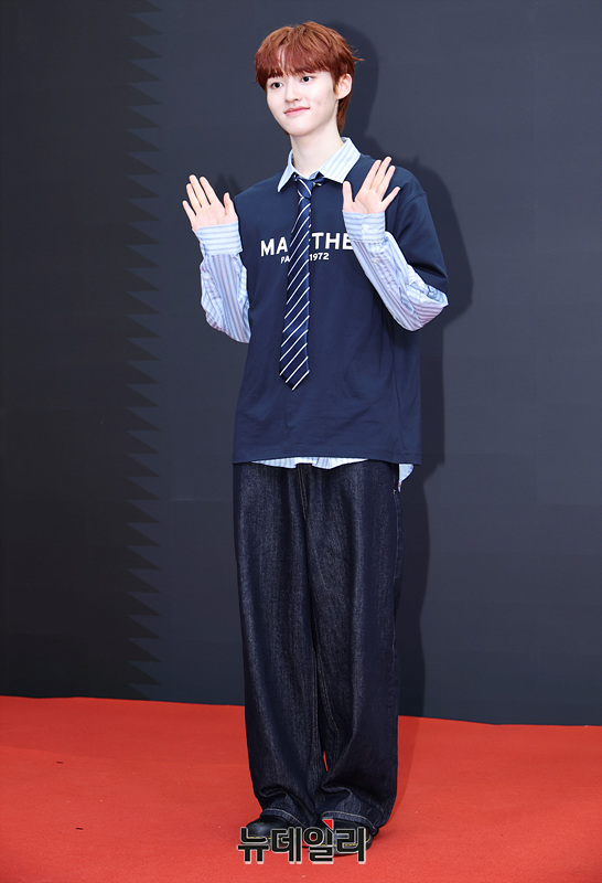 유어즈 강준성이 1일 오후 서울 용산구 썸머스타에서 열린 서바이벌 프로그램 '비 마이 보이즈(B:MY BOYZ)'의 데뷔 그룹 '유어즈(YUHZ)' 글로벌 기자회견에서 포즈를 취하고 있다.