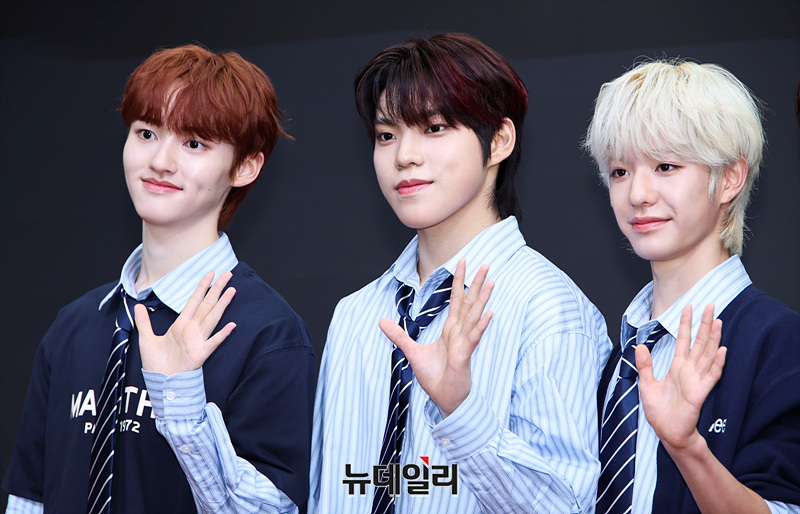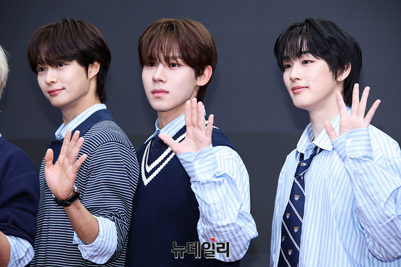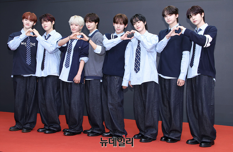 유어즈 효, 이연태, 문재일, 김보현, 카이, 강준성, 박세찬, 하루토가 1일 오후 서울 용산구 썸머스타에서 열린 서바이벌 프로그램 '비 마이 보이즈(B:MY BOYZ)'의 데뷔 그룹 '유어즈(YUHZ)' 글로벌 기자회견에서 포즈를 취하고 있다.