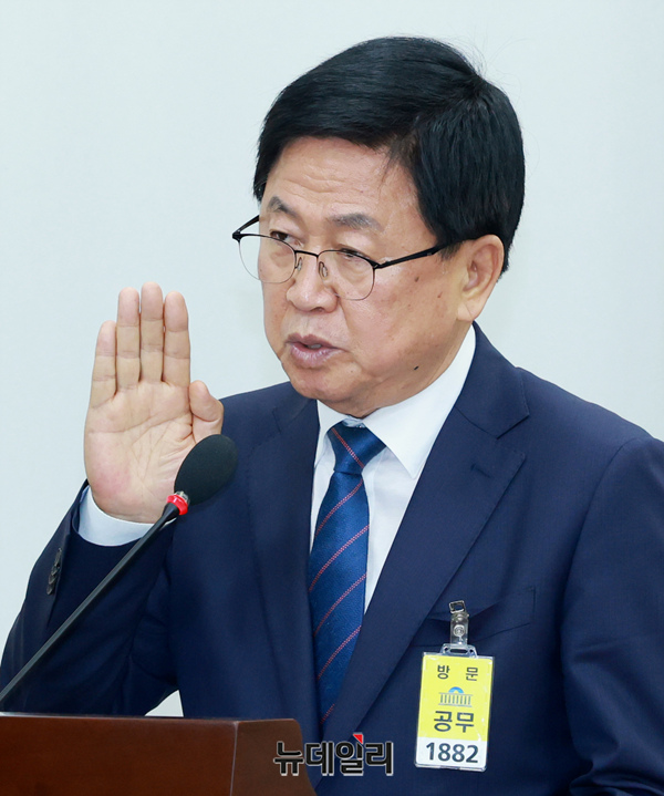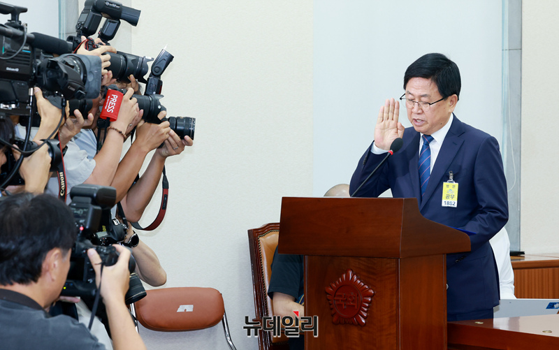 최교진 사회부총리 겸 교육부 장관 후보자가 2일 국회에서 열린 교육위원회의 인사청문회에서 증인선서를 하고 있다.