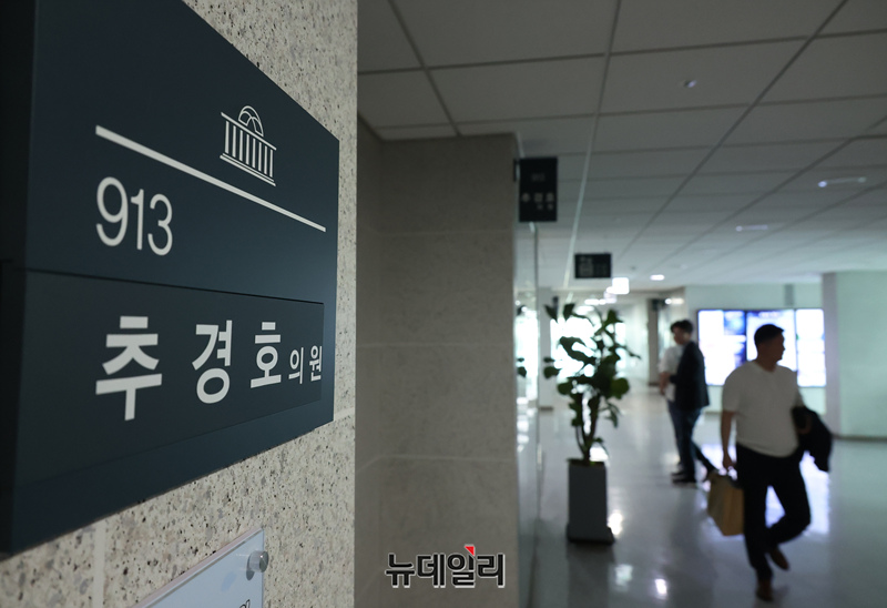 2일 국회 의원회관 내 추경호 전 국민의힘 원내대표 의원실 앞. 12·3 비상계엄 관련 내란·외환 의혹을 수사 중인 조은석 특별검사팀이 '계엄 해제 방해 의혹'과 관련해 추 전 원내대표에 대한 강제수사에 나섰다.