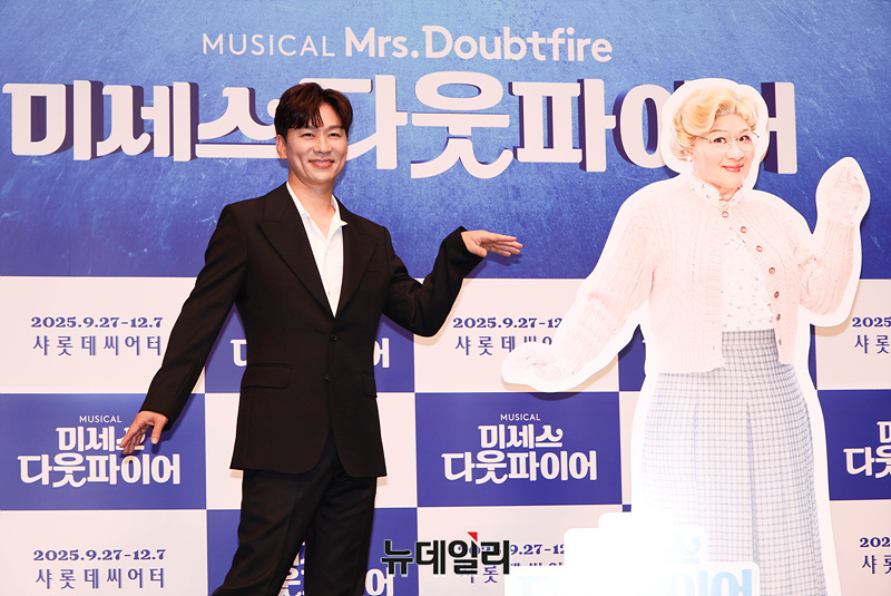 뮤지컬 '미세스 다웃파이어'는 로빈 윌리엄스 주연의 동명 영화를 뮤지컬로 만든 작품이다. 이혼한 다니엘이 유모 미세스 다웃파이어로 변장해 전 아내의 집으로 들어가 자녀들을 돌보면서 벌어지는 이야기를 그린다. 27일 첫 공연.