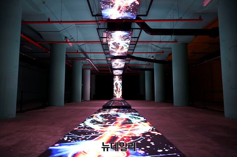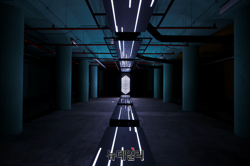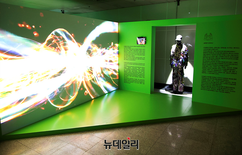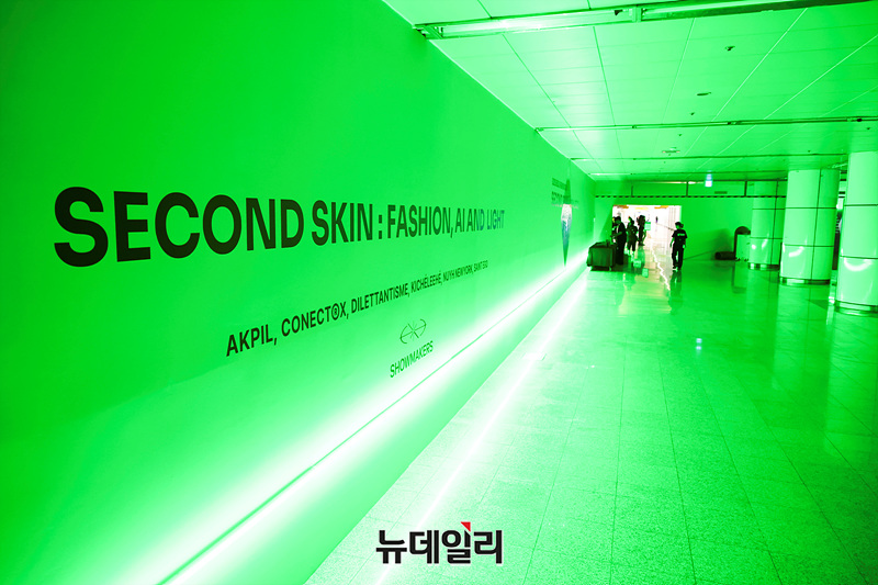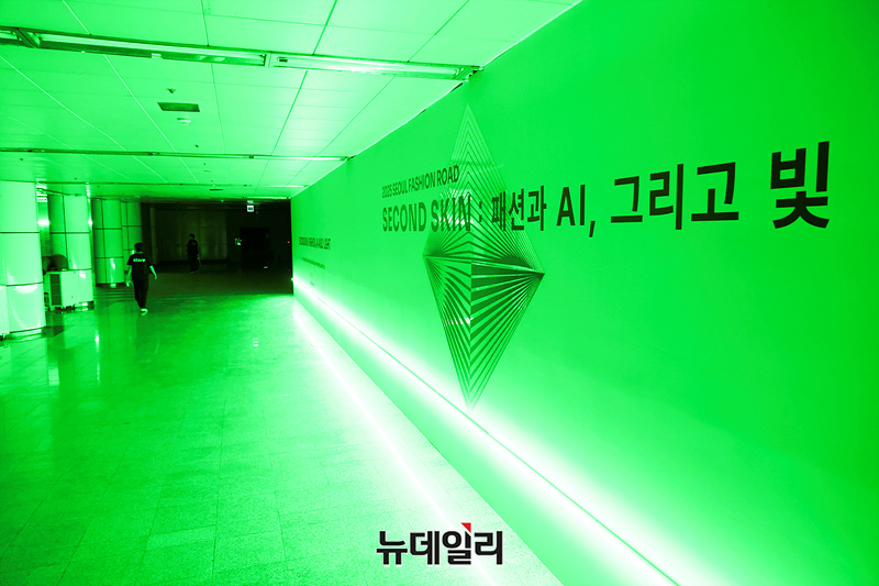 '2025 서울패션로드 SECOND SKIN: 패션과 AI, 그리고 빛' 전시가 2일 오후 서울 중구 신당역 지하 유휴공간에서 열리고 있다.