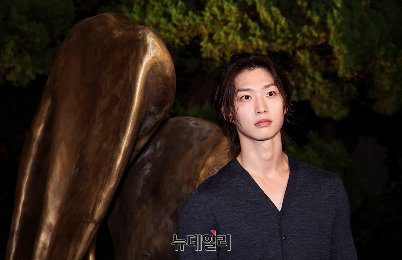 배우 이상헌이 2일 오후 서울 용산구 메종 마르지엘라 한남 플래그십 부티크에서 열린 메종 마르지엘라. Line 2 첫 챕터 전시 공개 기념 포토월에서 포즈를 취하고 있다.