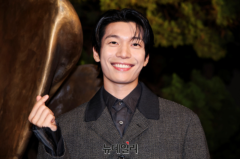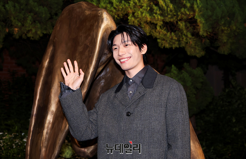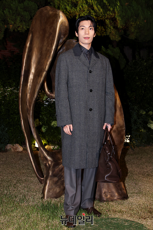 배우 위하준이 2일 오후 서울 용산구 메종 마르지엘라 한남 플래그십 부티크에서 열린 메종 마르지엘라. Line 2 첫 챕터 전시 공개 기념 포토월에서 포즈를 취하고 있다.