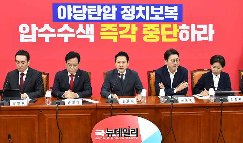 장동혁 국민의힘 대표가 3일 오전 국회에서 긴급 최고위원회 회의에서 모두발언을 하고 있다.