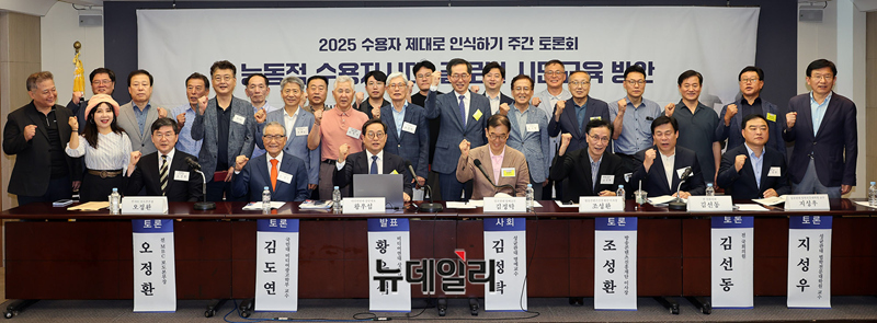 미디어연대 주최로 토론회 참석자들이 3일 오후 서울 중구 한국프레스센터에서 '능동적 수용자시대, 글로벌 시민교육 방안'을 주제로 열린 2025 수용자주간 토론회에서 기념촬영을 하고 있다.