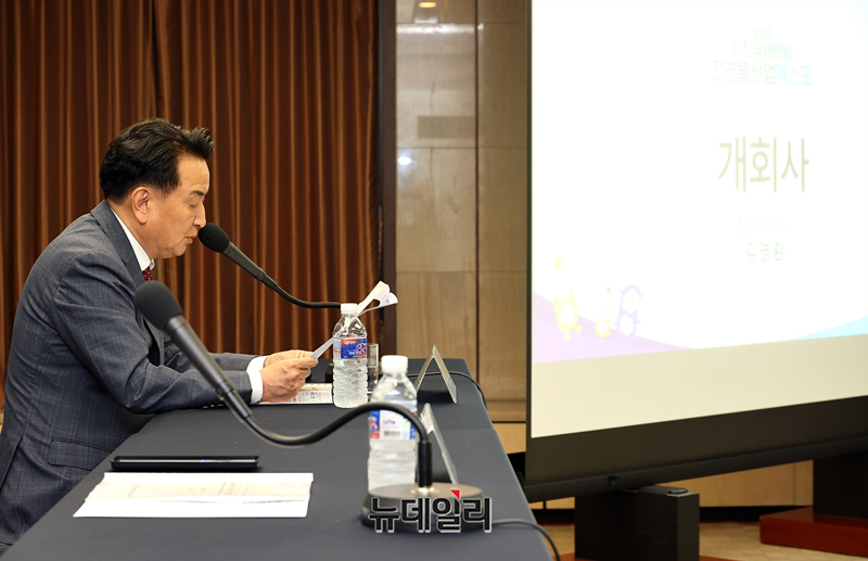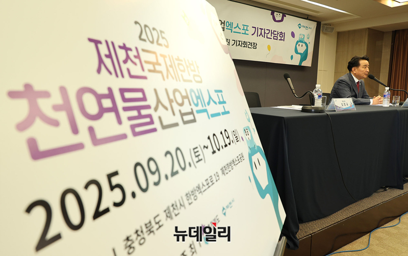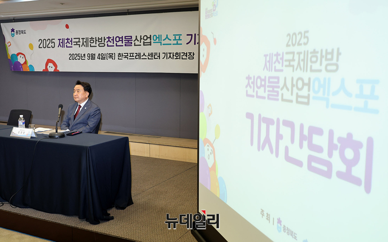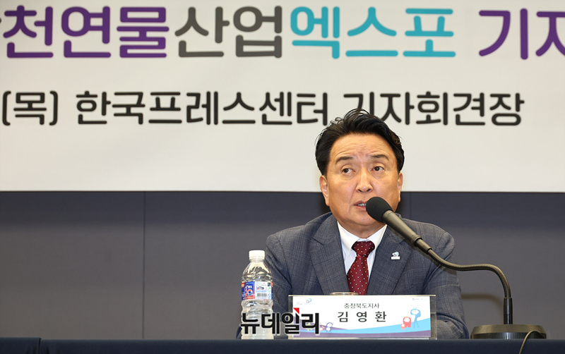 김영환 충북지사가 4일 오전 서울 중구 한국프레스센터에서 열린 '2025 제천국제한방 천연물 산업엑스포' 기자간담회에서 인사말을 하고 있다.