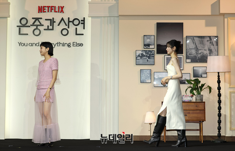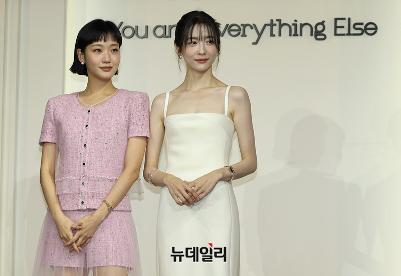 배우 김고은, 박지현이 5일 오전 서울 중구 앰배서더 서울 풀만 호텔에서 열린 넷플릭스 시리즈 '은중과 상연(감독 조영민)' 제작발표회에서 포즈를 취하고 있다.