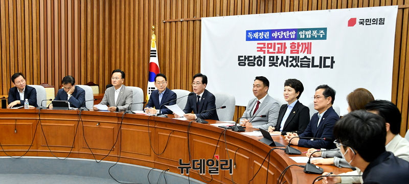 송언석 국민의힘 원내대표가 5일 오전 국회에서 열린 원내대책회의에서 모두발언을 하고 있다.