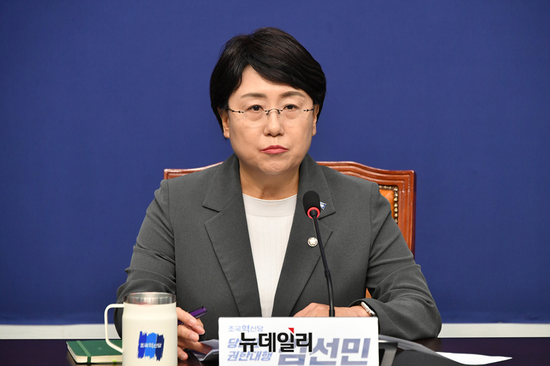 김선민 조국혁신당 대표 권한대행이 5일 오전 국회에서 당내 성비위 사건과 관련한 입장을 밝히고 있다.
