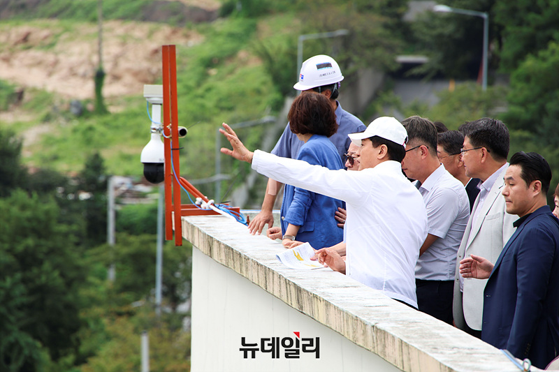 오세훈 서울시장이 9일 오전 서울 노원구 백사마을 재개발사업 현장을 둘러보고 있다.